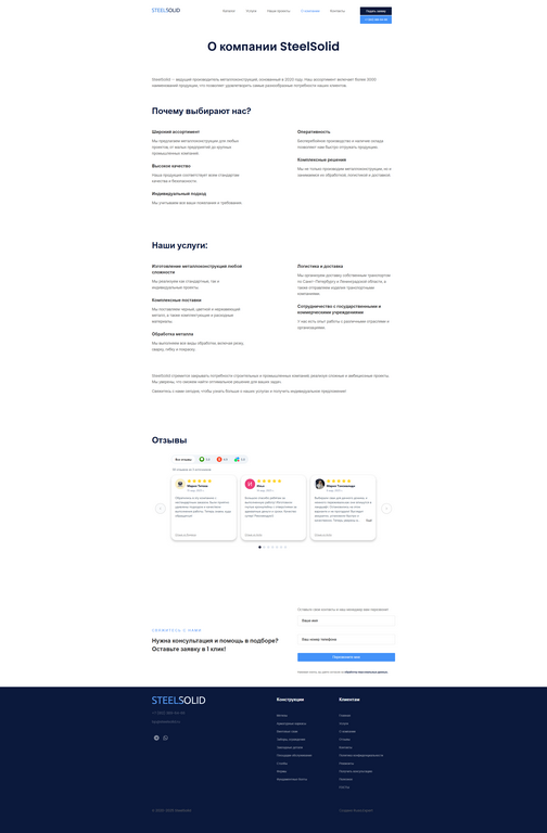 Компания Солид обратилась к нам с задачей создать сайт, который не просто будет "визиткой", а реально приведёт новых клиентов и покажет масштабы их работы. До этого у них был стандартный набор инструментов - портфолио в картинках и краткие описания услуг, которые не раскрывали глубину опыта и не вызывали доверия у предпринимателей.