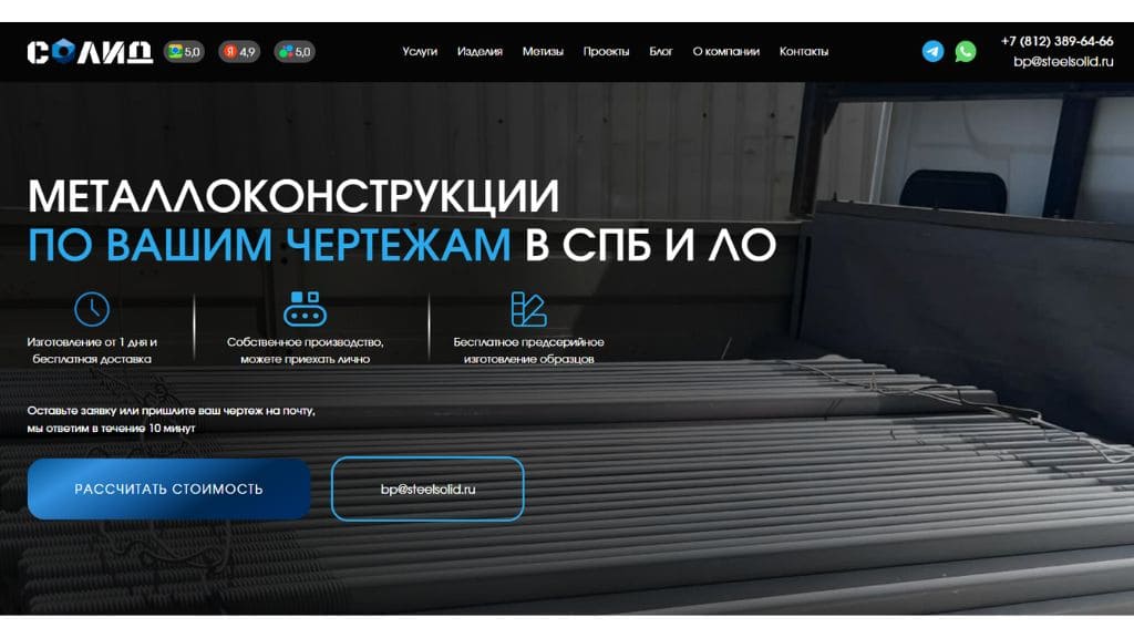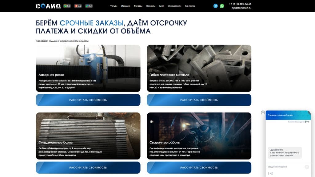 В итоге предприниматель видит: здесь решают весь спектр задач от резки до сварки, можно заказать срочно, а оплатить с отсрочкой. Это прямое попадание в интересы бизнеса и сильный стимул оставить заявку.