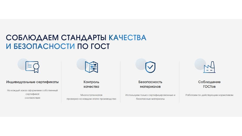 Этот блок усиливает доверие на уровне стандартов и правил. Для предпринимателя это важно: работать с подрядчиком, который соблюдает ГОСТы и гарантирует безопасность материалов, значит снижать собственные риски.